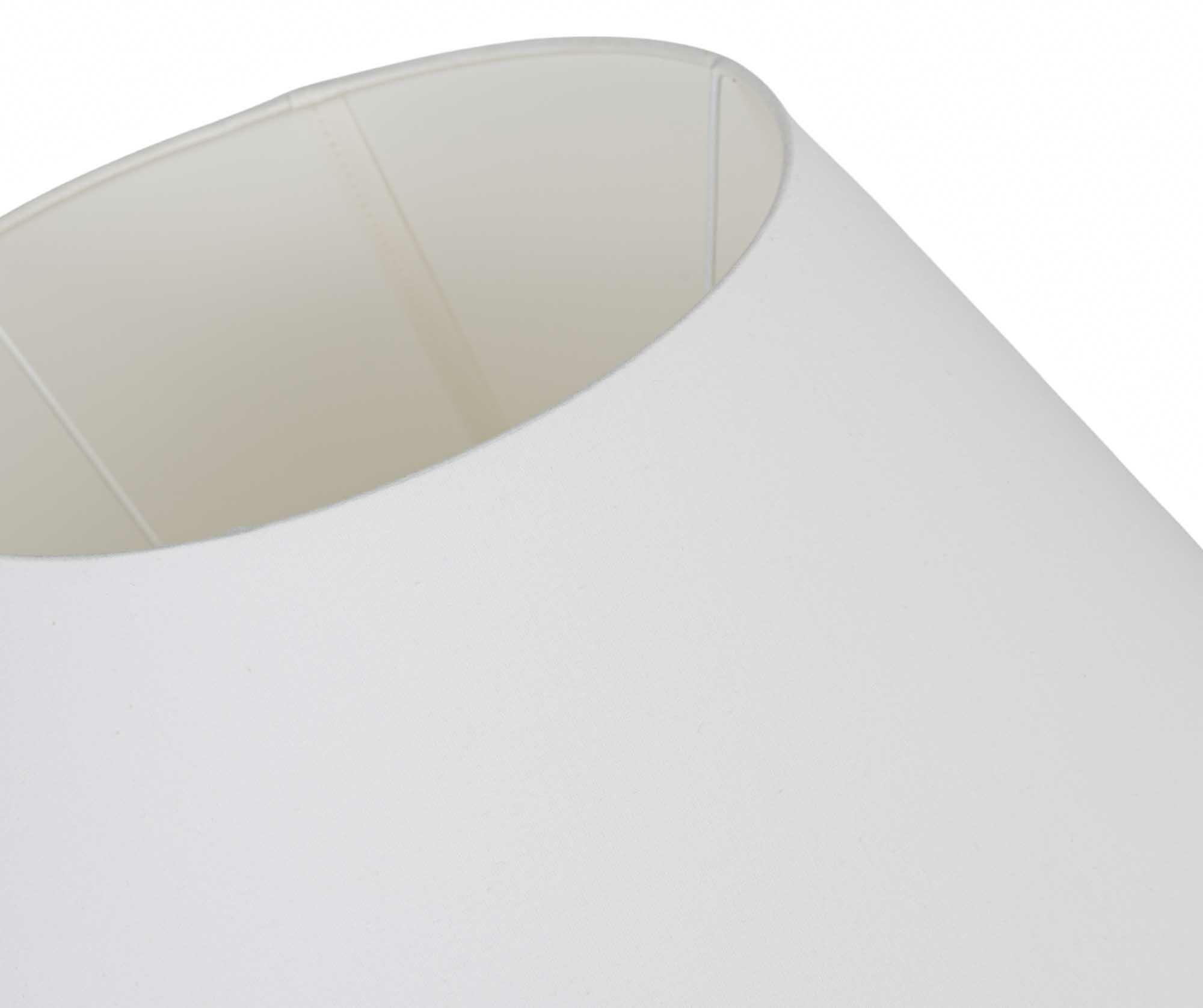 Na zewnątrz wykończony jest gładką, bawełnianą tkaniną, przyjemną wizualnie i schludną w odbiorze. Wnętrze abażuru pokryto białą folią, która skutecznie odbija światło, rozjaśniając przestrzeń bez efektu ostrego blasku. To światło, które sprzyja czytaniu, odpoczynkowi i codziennemu byciu w domu.