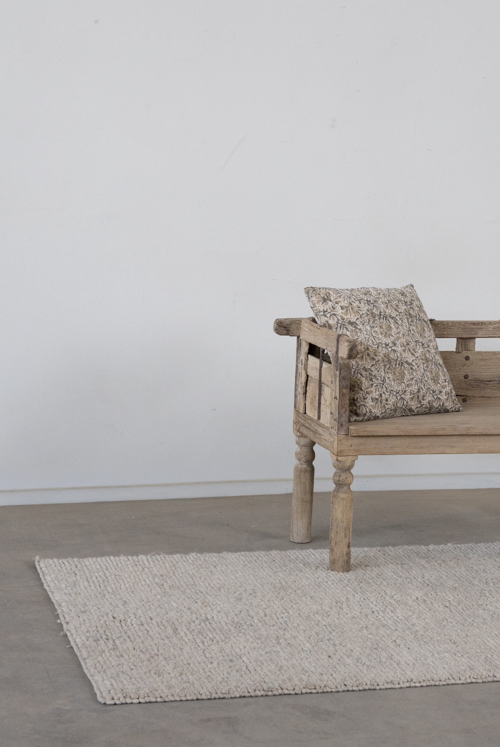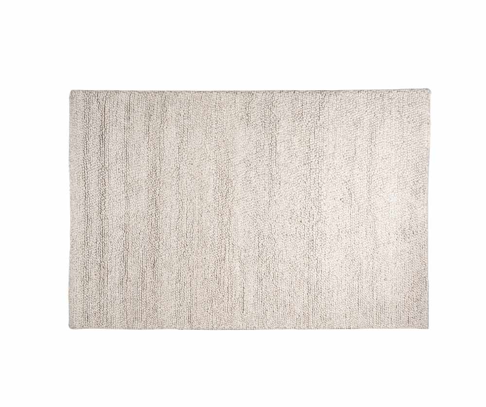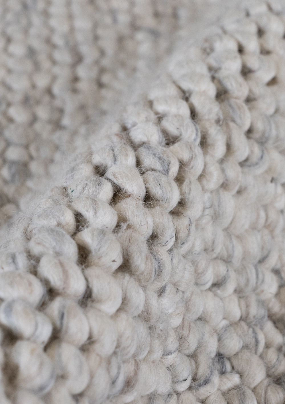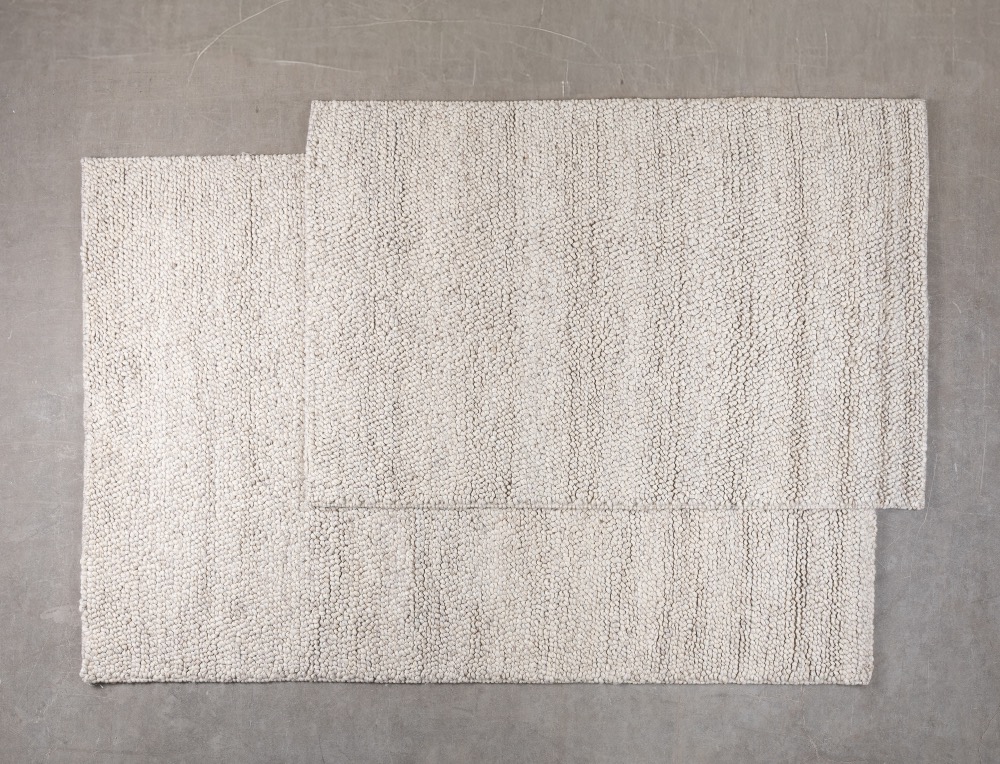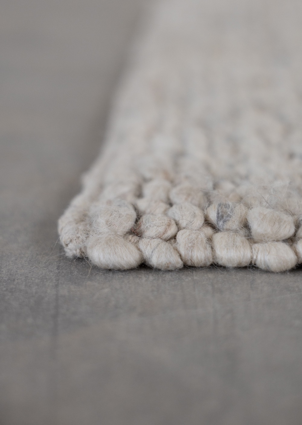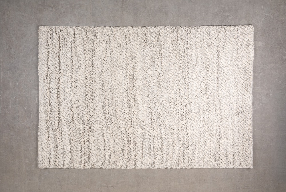 Dywan wykonany z naturalnej wełny i bawełny to praktyczny wybór do salonu, sypialni lub jadalni. Jasna, neutralna kolorystyka w odcieniach kremu i beżu sprawia, że łatwo dopasować go do różnych stylów aranżacyjnych – od klasycznych, przez skandynawskie, po nowoczesne. Wyraźna, pętelkowa struktura powierzchni nadaje dywanowi charakter i jednocześnie zwiększa jego odporność na codzienne użytkowanie. Wełna dobrze izoluje od chłodu, poprawia komfort akustyczny wnętrza i jest materiałem oddychającym, co sprzyja utrzymaniu przyjemnego mikroklimatu w pomieszczeniu. Dywan sprawdzi się zarówno jako centralny element aranżacji, jak i stonowane tło dla mebli oraz dodatków.