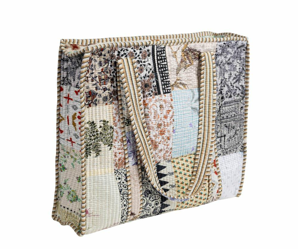 bawełniana torba patchworkowa w jasnej, neutralnej kolorystyce