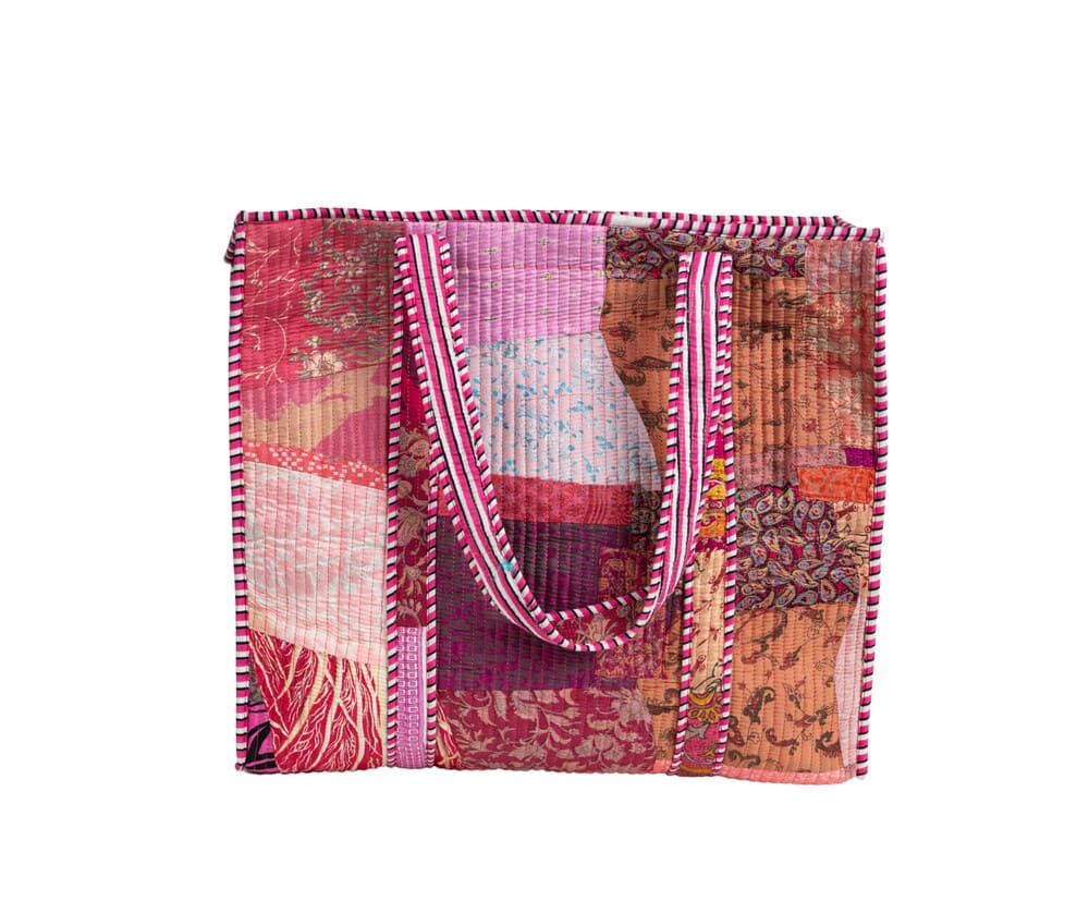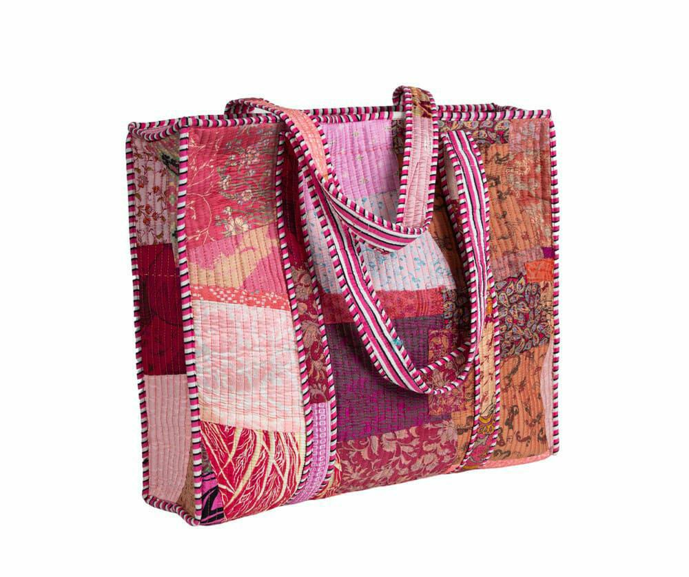 Ecoetno Torba 15 - torba bawełniana patchwork – energetyczna paleta różu i koralu