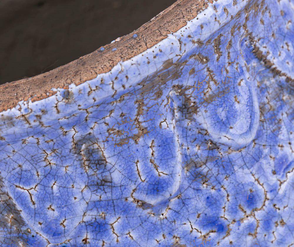 Głęboki, kobaltowy kolor – z efektem przetarć i lekkiego postarzenia.