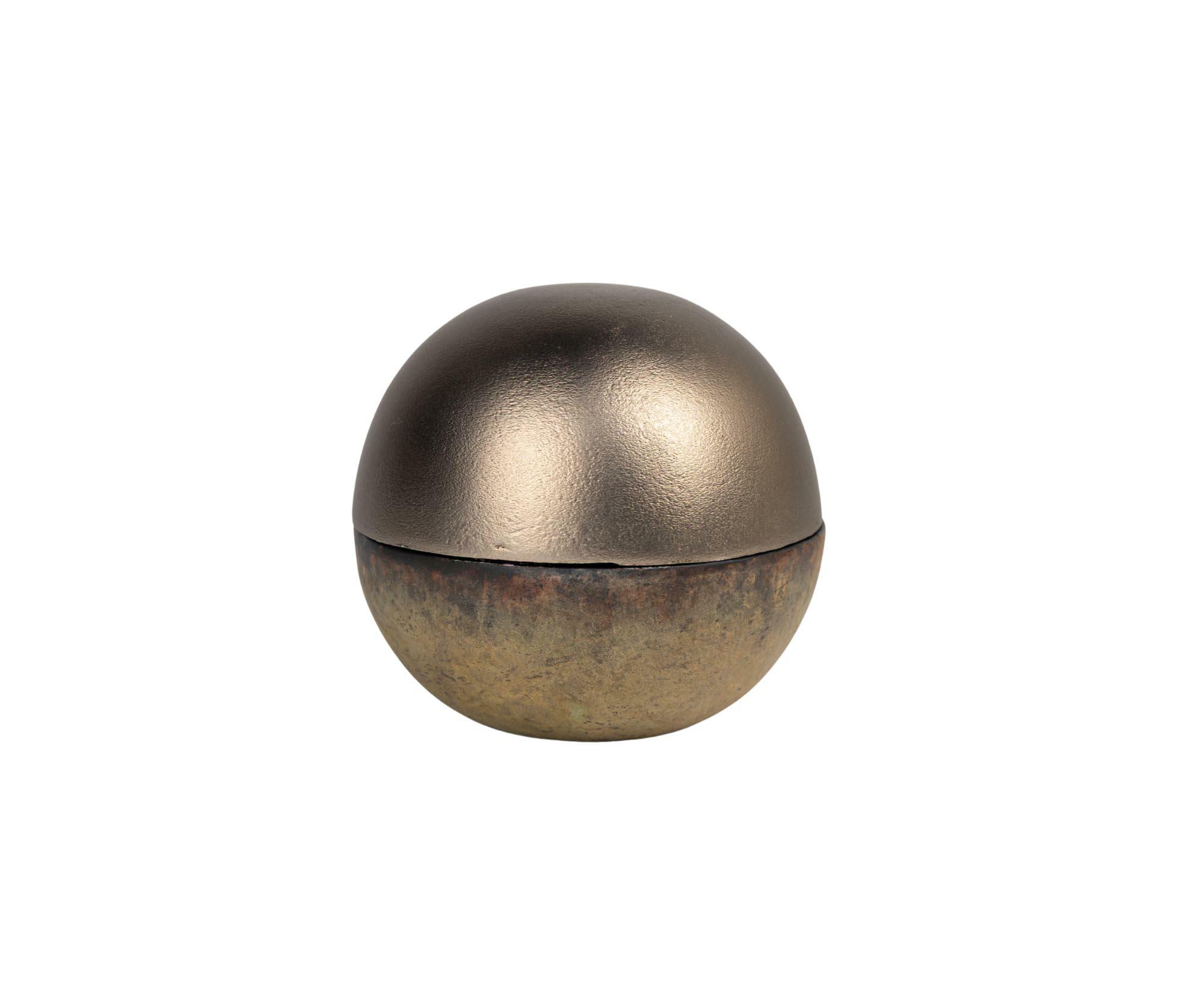 pudełko dekoracyjne z metalu o oryginalnej, kulistej formie