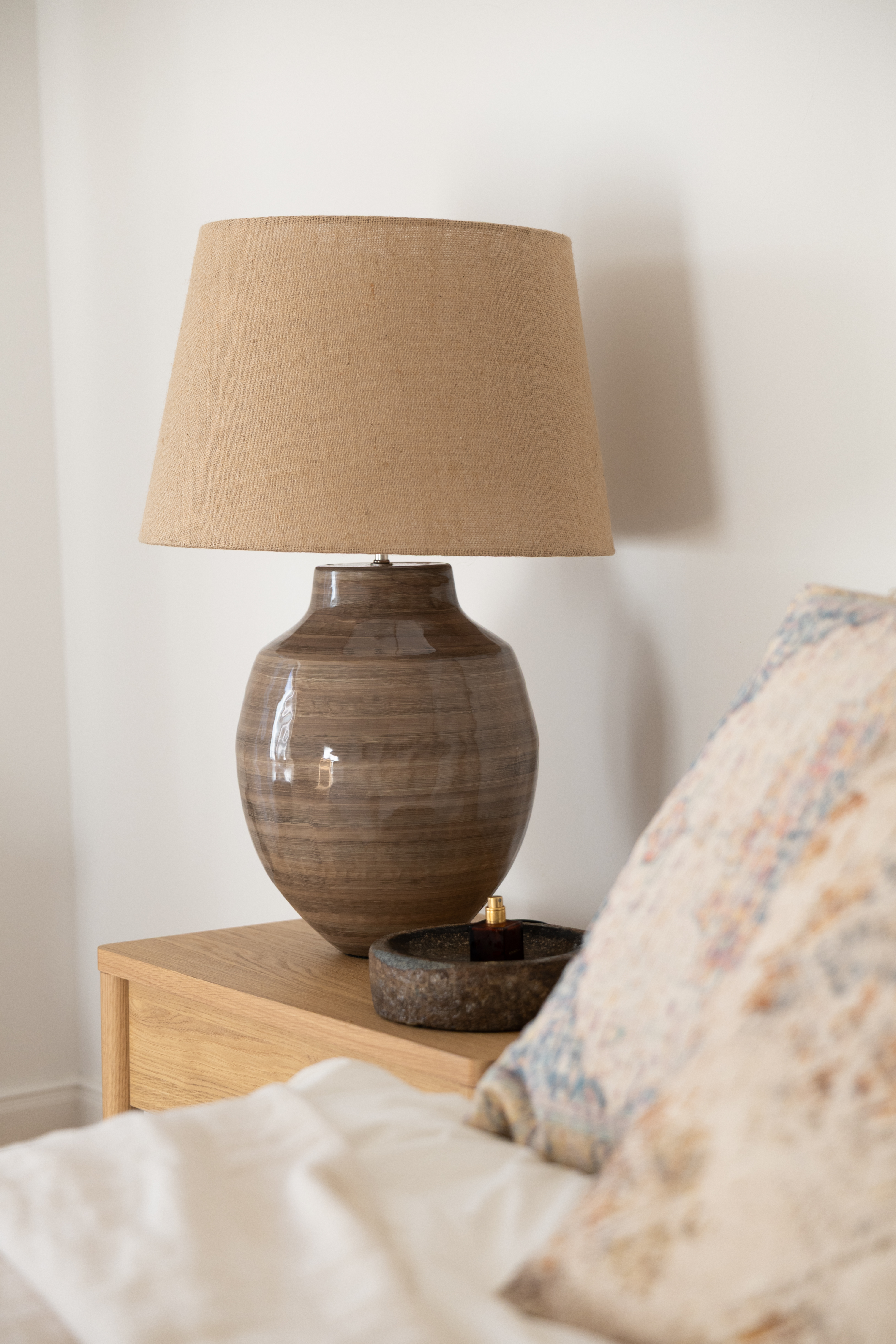 Lampa z kolekcji Modern Chocolate to propozycja dla tych, którzy stawiają na prosty, lecz dopracowany design. Wykonana z metalu, lakierowana na odcień torfowo‑czekoladowy z delikatnymi paskami. Jej pękata forma dobrze komponuje się z wnętrzami minimalistycznymi, loftowymi lub klasycznymi.