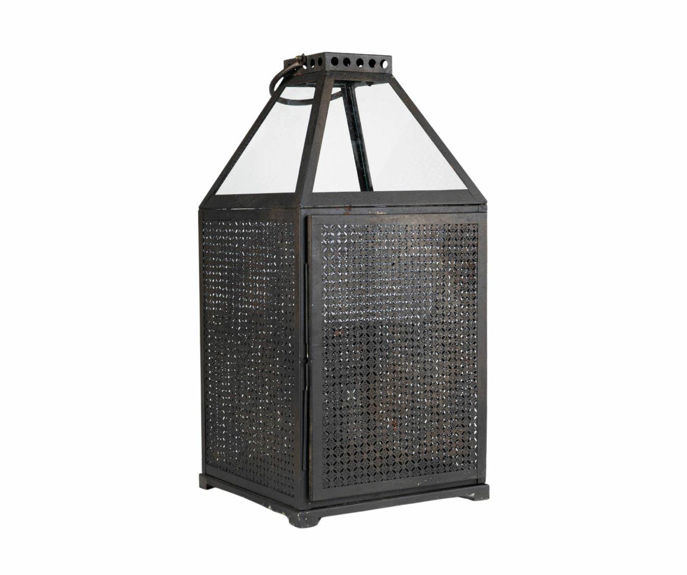 Ta metalowa latarnia dekoracyjna w kolorze głębokiej czerni łączy orientalny charakter z nowoczesną formą. Jej ścianki zdobi misterny, ażurowy wzór, który po zapaleniu świecy tworzy na ścianach magiczne refleksy świetlne. Przeszklone górne panele dodają elegancji i dbają o rozproszenie światła.