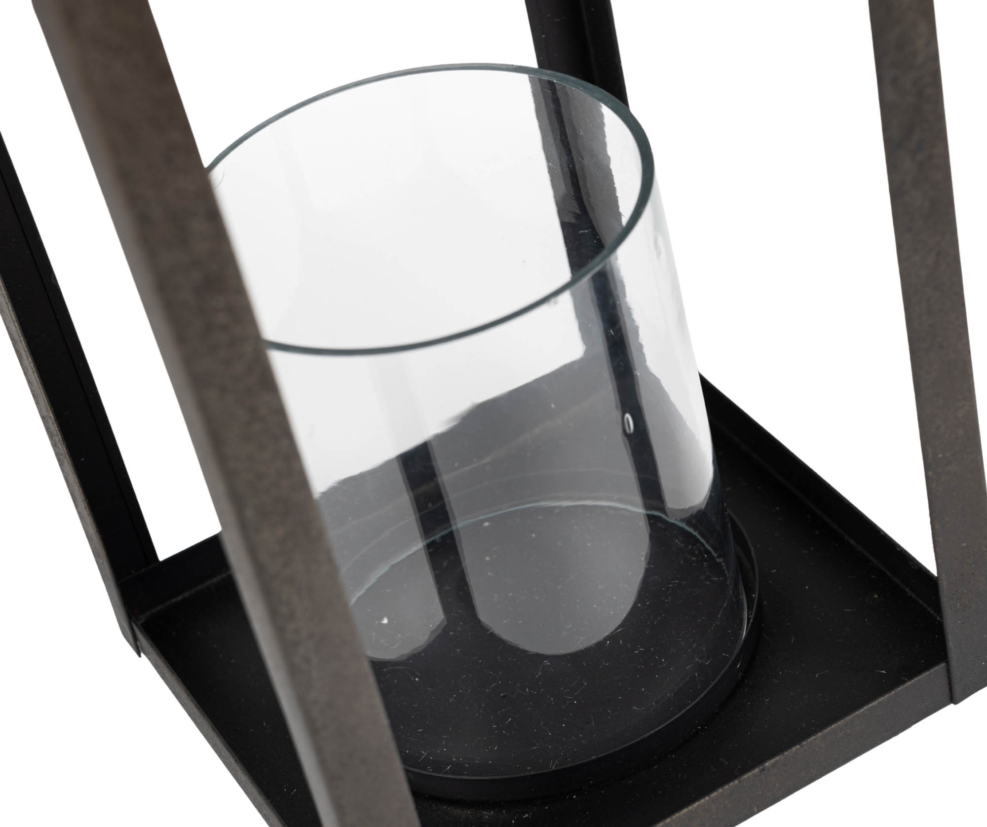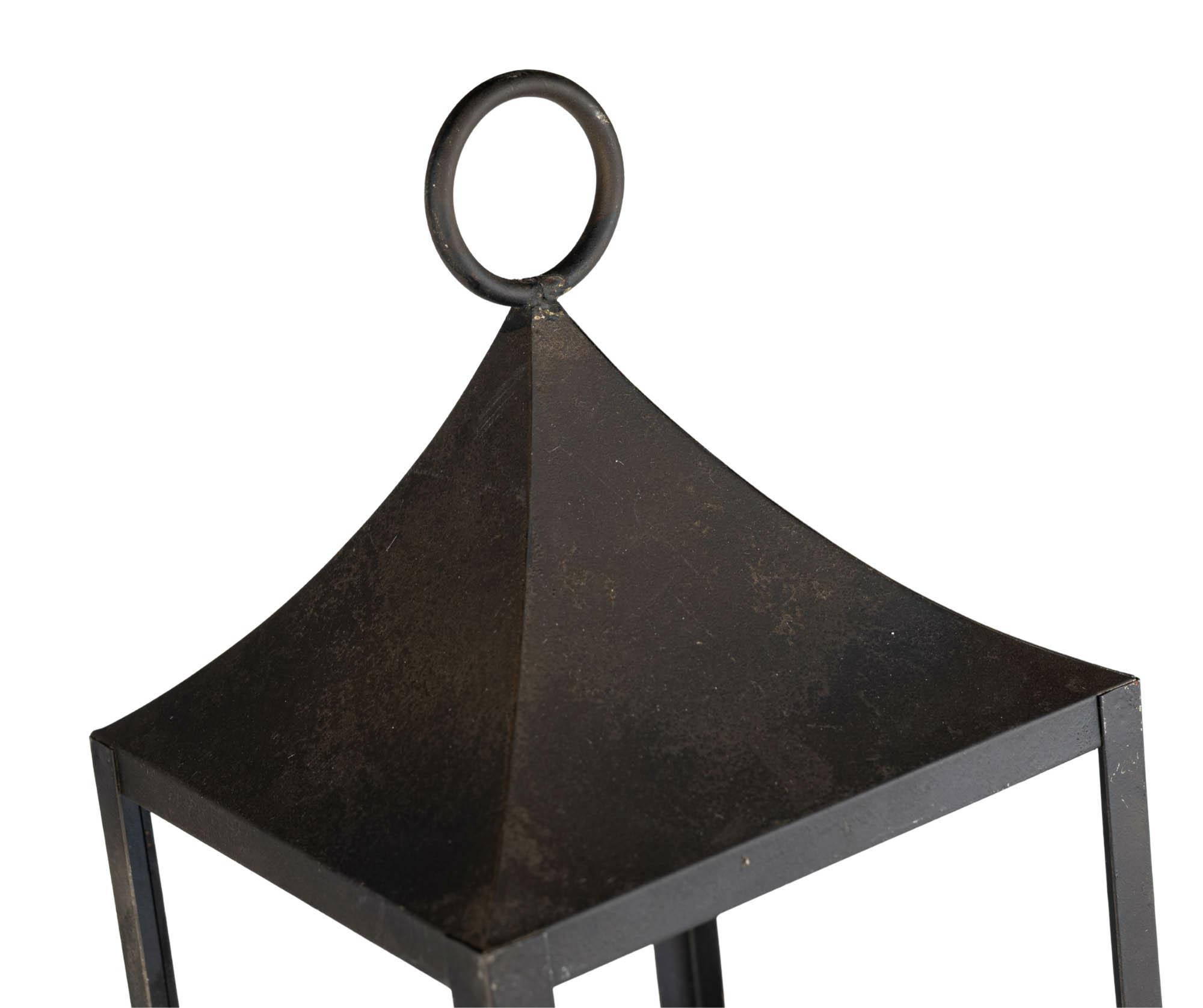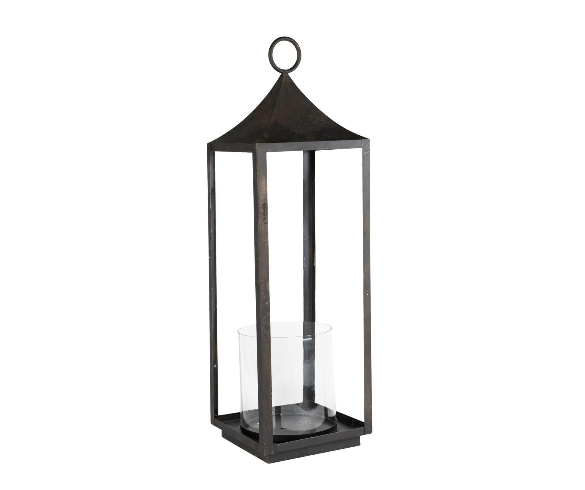 Ta wysoka metalowa latarnia w odcieniu przyciemnionej czerni to idealne połączenie prostoty i elegancji. Jej geometryczna forma, subtelnie zaokrąglony daszek i ozdobny uchwyt nadają całości szlachetnego charakteru. Wewnątrz znajduje się szklany wkład na świecę, który zapewnia bezpieczeństwo i estetykę podczas użytkowania.