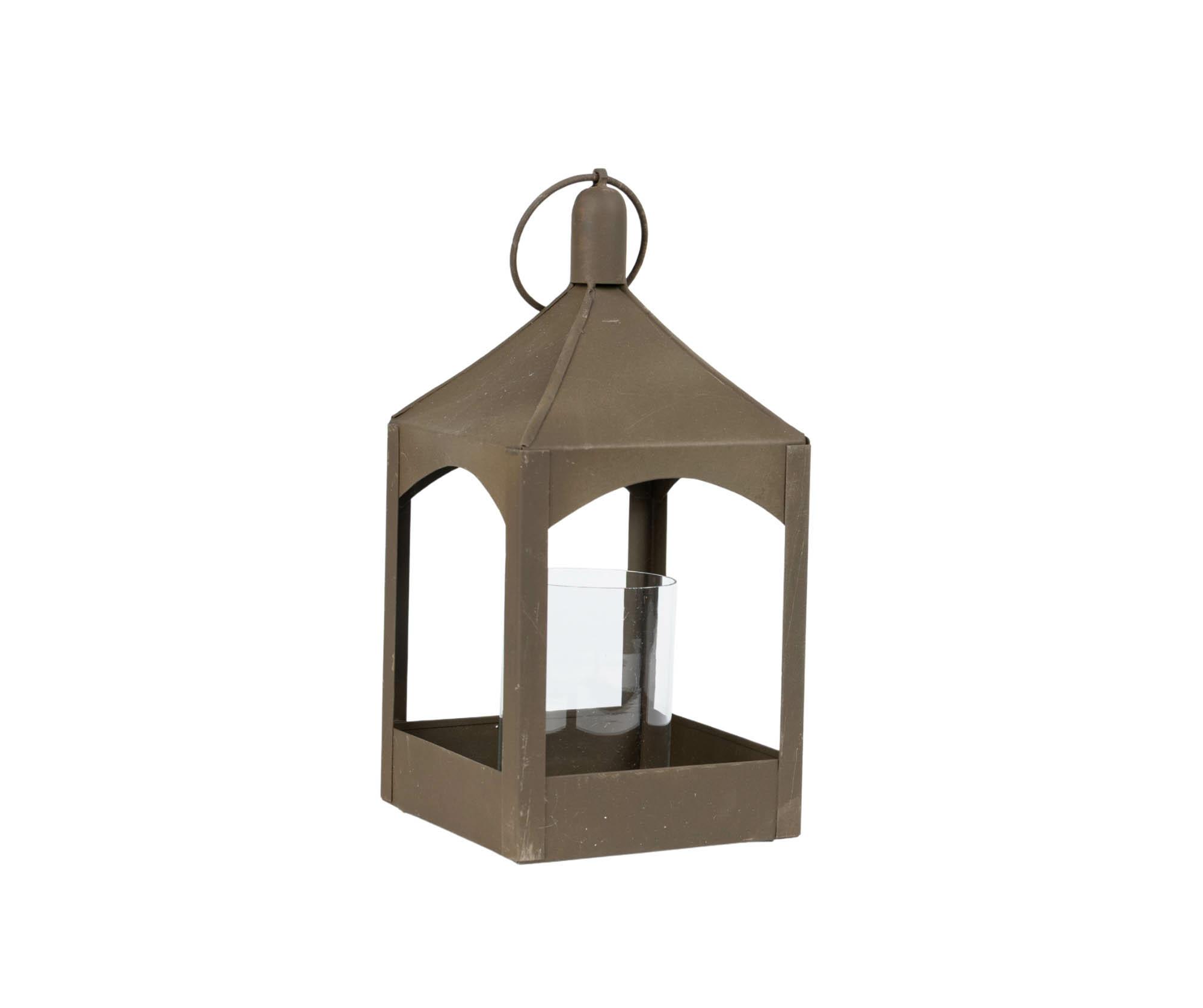 Niewielka latarnia dekoracyjna wykonana z metalu w rustykalnym, surowym stylu. Prosta forma z subtelnym zdobieniem i szklanym wkładem pozwala bezpiecznie umieścić tealight lub świecę, tworząc nastrojowe światło zarówno wewnątrz, jak i na zewnątrz.