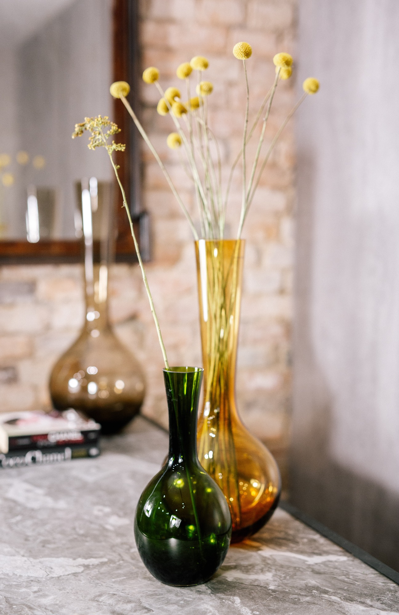 Elegancki szklany wazon w kolorze bursztynu to ozdoba, która pomoże zaaranżować pusty blat komody czy przestrzeń przy stoliku kawowym. Ciekawy kształt jakim jest pękaty spód i długa, wąska szyjka sprawia, iż jest on dekoracją sam w sobie a z dodatkiem np. długiej róży czy gałęzi stworzy idealny duet.